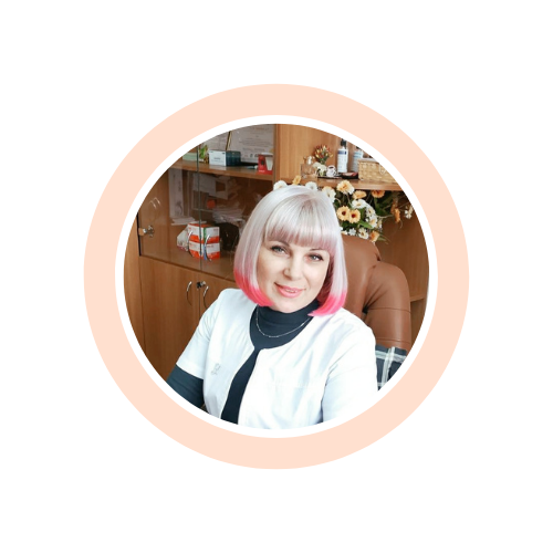 Стаж 28 років. Закінчила Національний Національний фармацевтичний університет. Отримала кваліфікацію провізора за спеціальністю "Фармація". 7 років у щелепно-лицьовій та загальній хірургії. У 2017 році освоїла класичну та апаратну косметологію. У 2019 році закінчила Міжнародну школу естетичної косметології "ART OF BEAUTY" за курсом "Мезотерапія та біоревіталізація". У 2019 році отримала диплом